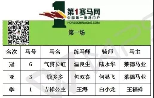 第一场赛事,6号马“气贯长虹”第二次出征,一扫之前的阴霾情绪,激昂上阵,开闸之后一路领放,直冲终点,一鼓作气拿下本场冠军。大热门“吉祥公主”改变策骑战略,结果失误,后段并未全力爆发,憾得第三。首次出战的3号马“钱多多”则将本场亚军归入囊中。
