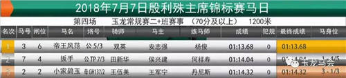 冠军:“冠仪战神” 马主:马静 骑师:陆金贵