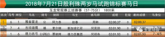 冠军:“雁春雷龙” 马主:赵春 骑师:阿力泰