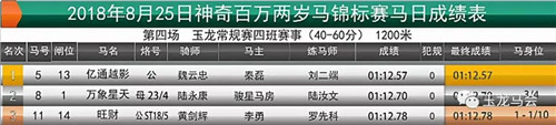 冠军:“狂飙” 马主:侯兴建 骑师:田新华