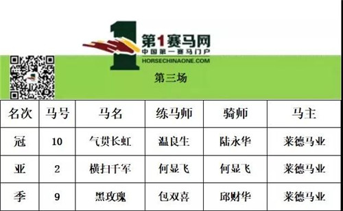 闸门打开后,4号马“天赋黑魅”率先出闸并占夺先机、身后是3号马“天骄”、紧接着是6号马“祥龙”、以及9号马“黑玫瑰”这4匹赛驹占据领放位置。将本场节奏带领了起来。比赛进入弯道后,依旧是4号马“天赋黑魅”保持领放位置,身后是6号马“祥龙”、10号马“气贯长虹”。拐过弯道进入最后的直线冲刺时,所有骑师都开始打起马鞭,催促马匹奋力加速。这时10号马“气贯长虹”后程发力,在赶超6号马“祥龙”后,开始了最后的冲刺。9号马“黑玫瑰”见情势不好,也不甘示弱,快速提起自己的速度去争夺头马名次。最终还是10号马“气贯长虹”技高一筹,成功问鼎冠军荣誉。而2号马“横扫千军”在此时也发彪了,成功赶超9号马“黑玫瑰”后顺势拿走了本场亚军的名次。9号马紧随其后夺下本场季军荣誉。