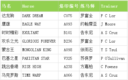 截至5月14日,共有11匹实力派赛驹报争了该赛。其中包括上届冠军“巴基之星”、2019年花旗银行香港金杯盟主“时时精彩” 、2018年花旗银行香港金杯盟主“马克罗斯” 及浪琴表香港杯冠军“欢乐之光”等等。