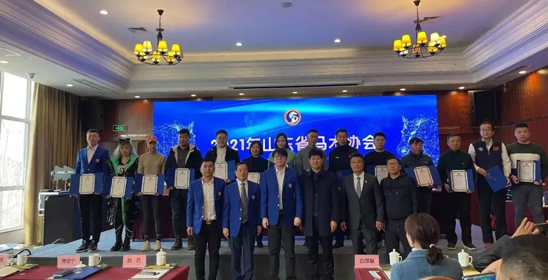 第一赛马网了解到,2022年1月14日下午,山东省马术项目备战工作会议暨2021年山东省马术协会年度总结表彰大会在山东省体育中心召开,青岛宝湖马术俱乐部作为会员单位应邀参加。