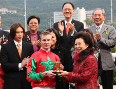 赛后,骑师给马迷送礼道别,感谢一年来的支持,并相约下季再见。