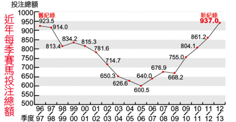 香港沙田赛马场举行2014至15年度马季的最后一天赛事,香港赛马会于赛后公布,全季投注总额为1079.25亿元(港币,下同),与2013至14年度相比,上升5.8%,再次打破历年纪录。