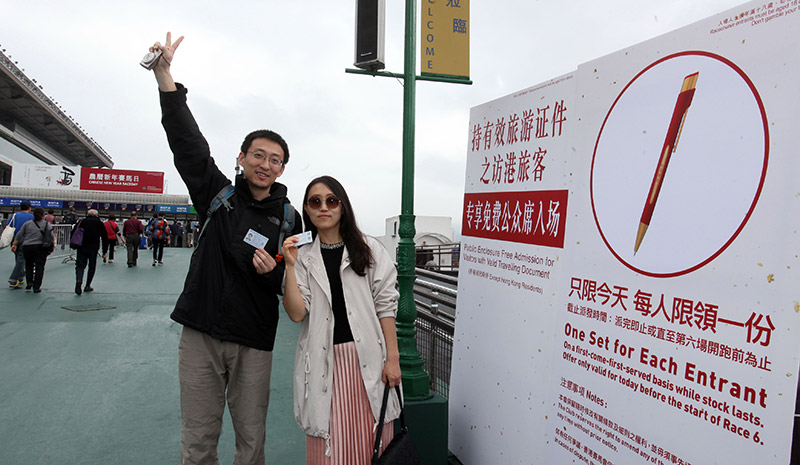 戊戌狗年,天狗送吉祥迎新岁!香港赛马会将于大年初三 (2月18日)在沙田马场举行“农历新年赛马日” 。 当日上午11时群星亮相,点晴开年,首场赛事下午12:30分红盘高开。旅客凭有效港澳通行证或护照可免费进入公众席。