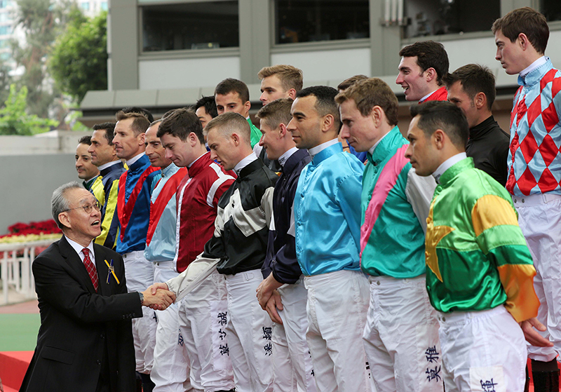 赛后,骑师给马迷送礼道别,感谢一年来的支持,并相约下季再见。