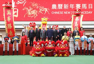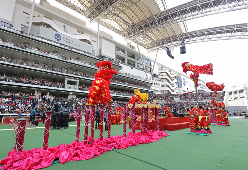 当日有醒狮表演将喜气传遍马场,风水玄学家陈定帮联同一众骑师向大家拜年,带来新年祝福。