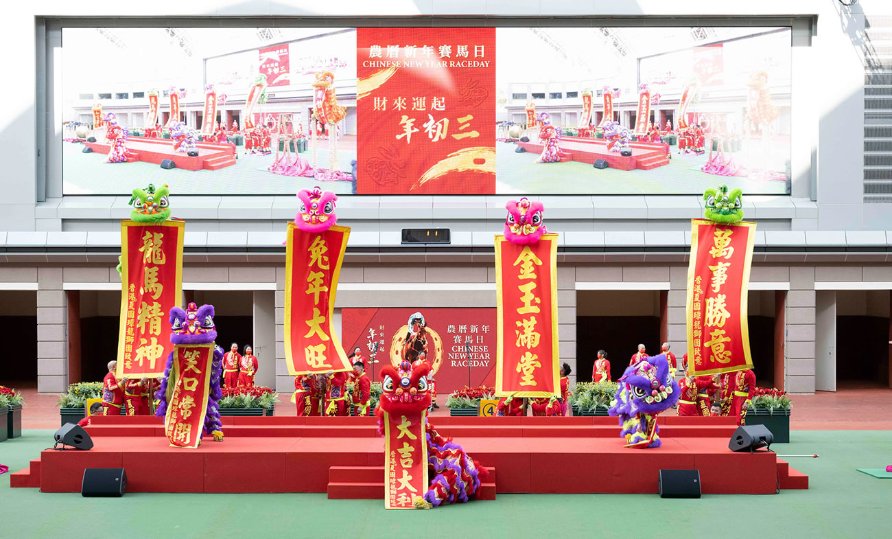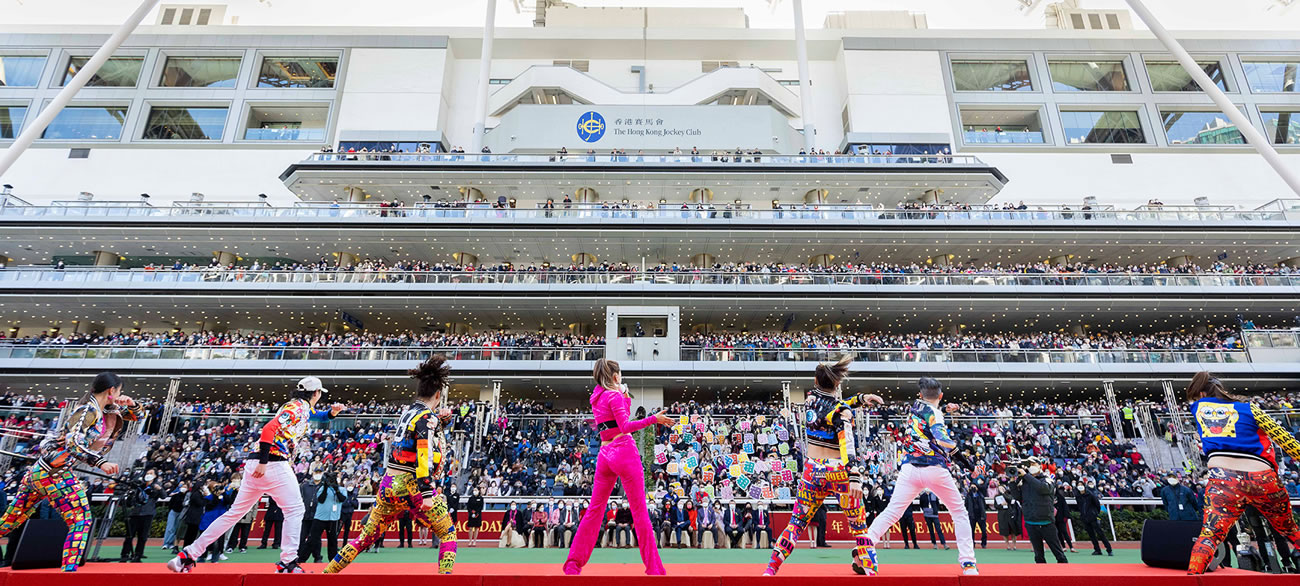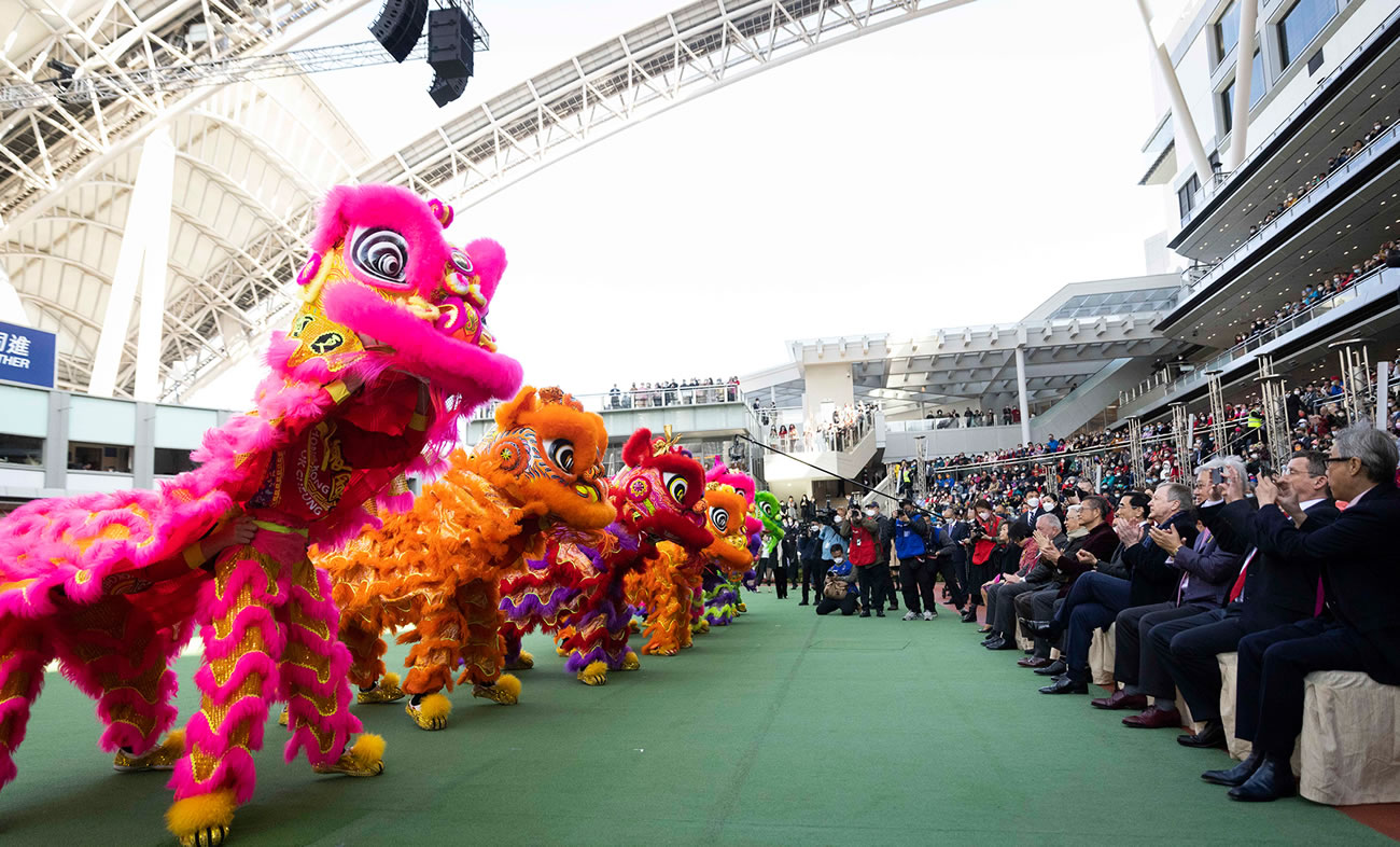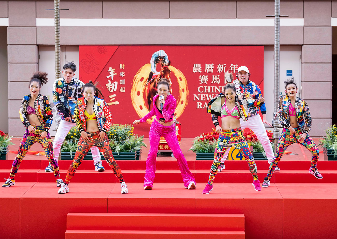 当日上午11时15分,香港马会在沙田马场马匹亮相圈举行综合汇演。乐坛天后容祖儿将靓声道贺,与马迷一起欢渡新春。此外,醒狮与一众骑师也会向大家拜年,共迎畅旺新一年!