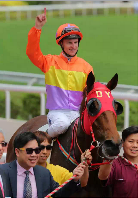 2014年3月30日策骑“格哥儿”在1800米香港赛马三级赛精英碟比赛中夺魁