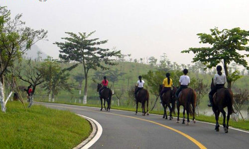 俱乐部毗邻风光迤逦的松山湖"松湖花海"景区,山水环抱、空气清新,是一个远离城市喧嚣的世外桃源,也是开展马术健身训练的最佳环境。
