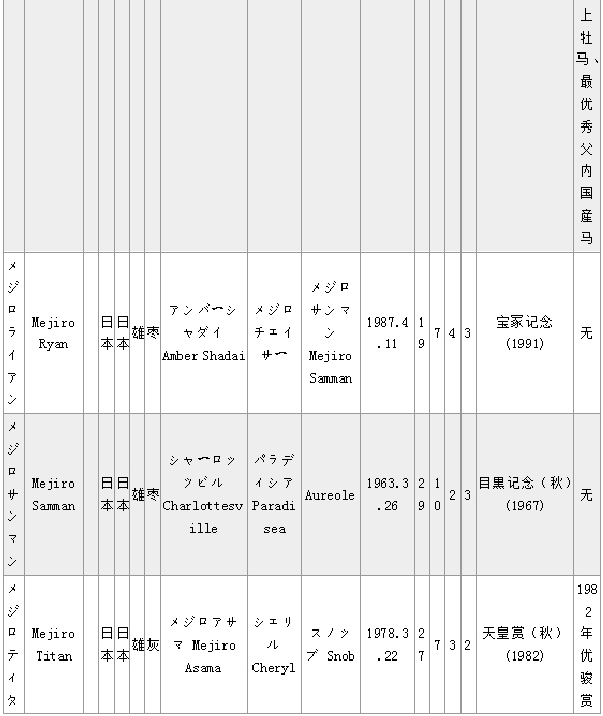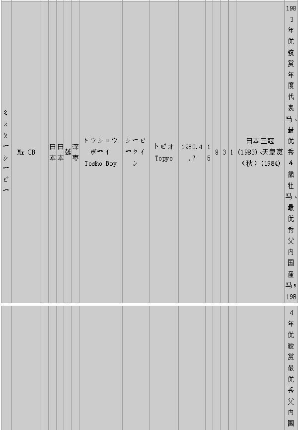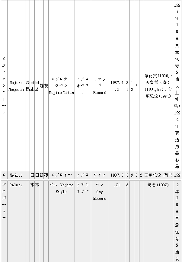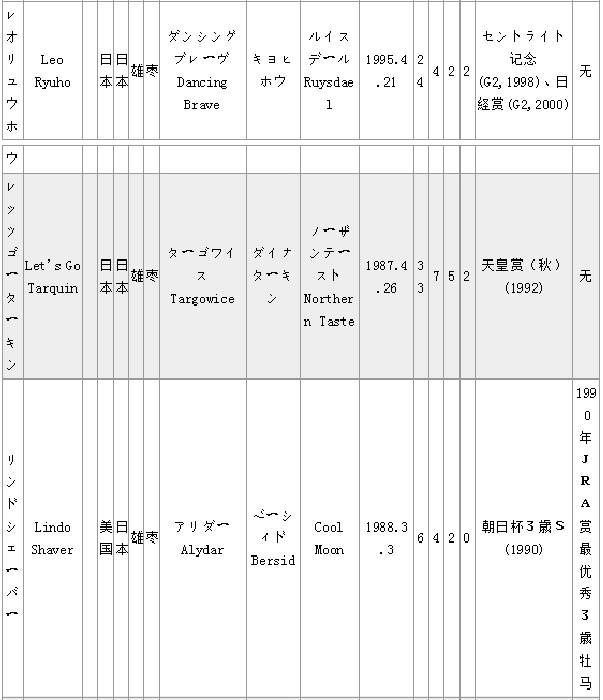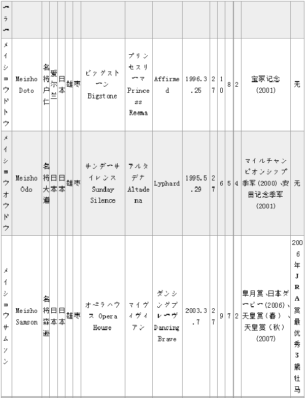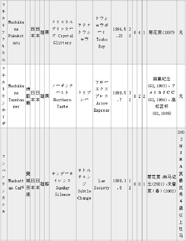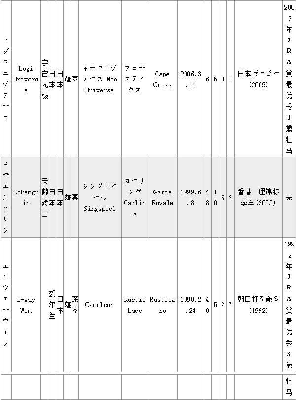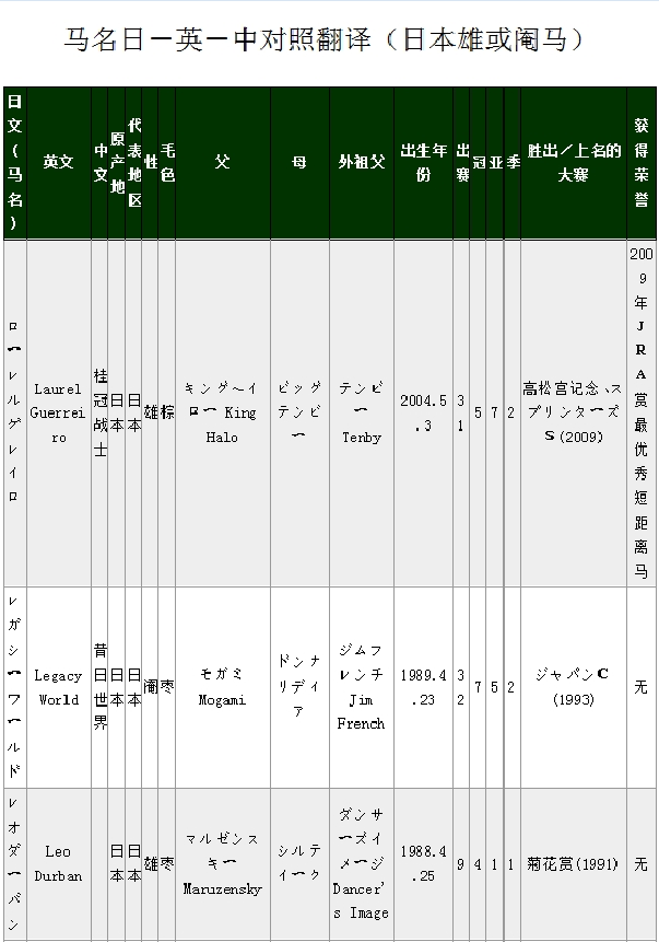 马匹中英文名对照(日本马LM)