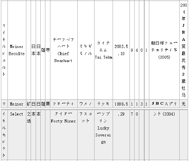 马匹中英文名对照(日本马H ~K)