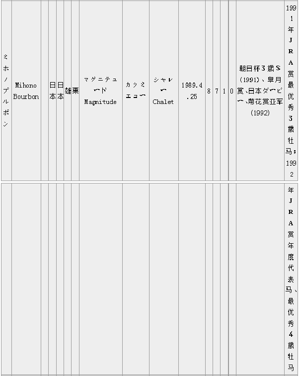马匹中英文名对照(日本马A BC)
