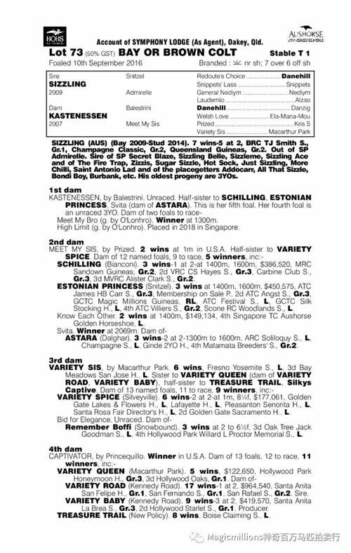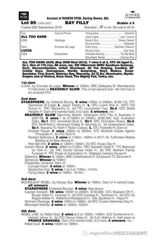 10月9日,神奇百万黄金海岸两岁在训马拍卖会即将开槌。9月13、14、17日已经成功举行了3场试跑。接下来,在拍卖会前会不断介绍部分拍卖马匹,今天继续介绍几匹优秀公母马!