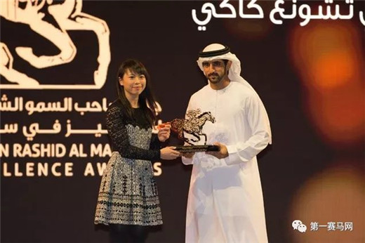 2017年美国加州达利奖的颁奖典礼上,蒋嘉琦荣膺最佳女见习骑师奖。