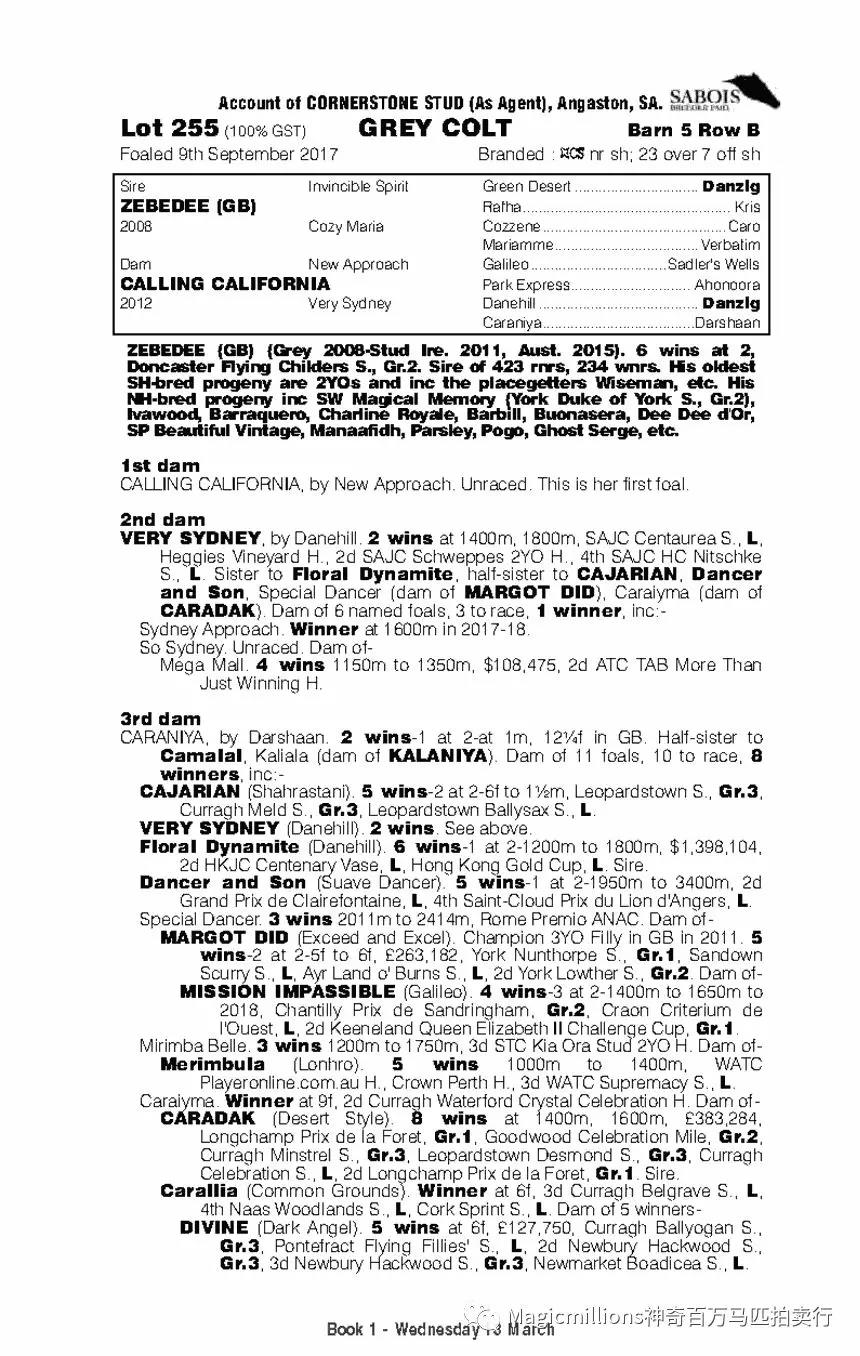 据第一赛马网获悉 近日,澳大利亚神奇百万拍卖行正式发布2019年阿德莱德周岁马拍卖会在线目录。阿德莱德周岁马拍卖会可谓是澳洲一级赛明星的摇篮。比如,最近的毕业生,墨尔本春季嘉年华一级赛冠军Viddora和Amphitrite;费明顿马场不败的两岁马 (Free of Debt) ,曾在当年的阿德莱德周岁马拍卖会上以3万澳元的价格售出……这些优秀毕业生都让阿德莱德周岁马拍卖会成为备受马主们关注的重量级拍卖会。