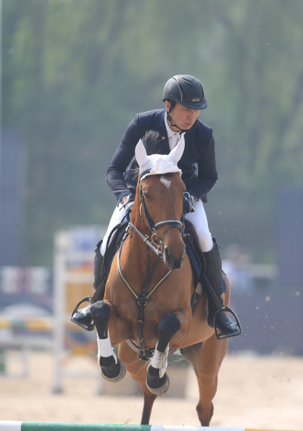 随后进行的比赛是120-130cm争时赛,于11:00开始。昨日积分赛前三名出场顺序:李耀峰19号、王韫婧8号、李振强13号。郭庆强6号,边巴次仁9号,赵志文23号,田雨27号。经过激烈角逐,前三名由蒙全威、李振强、格桑平措分获。