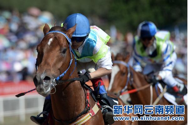 摘要:5月3日,骑手在混合组2000米速度赛马比赛中。 当日,2015年云南大理三月街民族节赛马大会开赛。