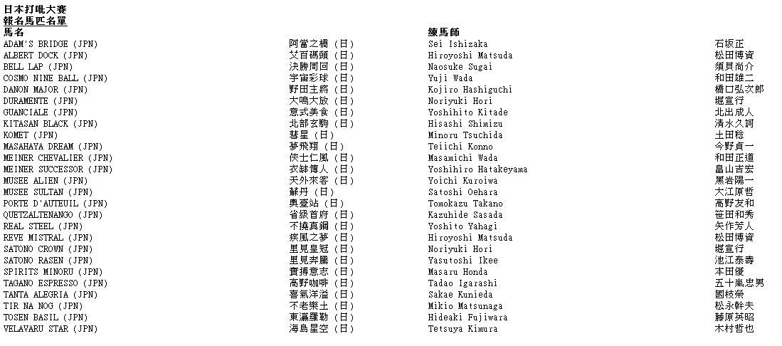 日本德比大赛的最后宣布出赛马匹名单及排位,定于5月28日星期四下午公布。