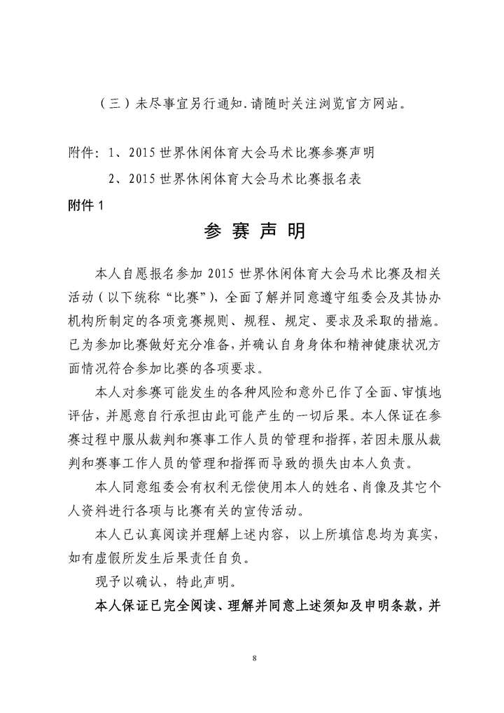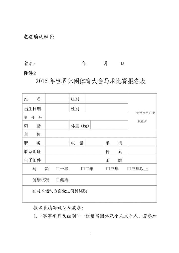 附件:1、2015世界休闲体育大会马术比赛参赛声明