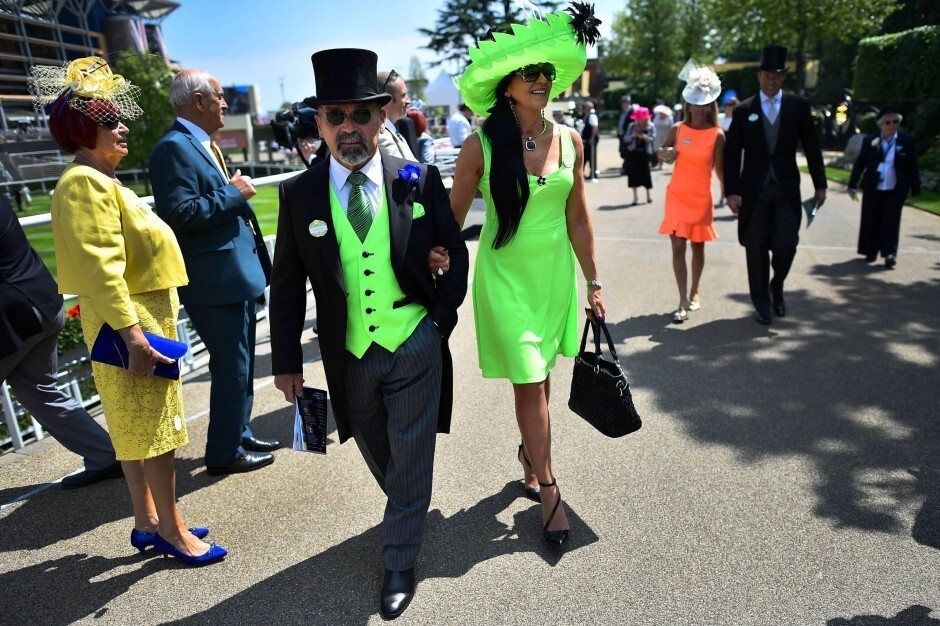 但不得不说的是,这一天习惯性的称为淑女日(Ladies Day),因为每年的皇家赛马会都会吸引大批盛装前来的名媛贵妇,这也是英伦淑女们展示时尚服装与创意帽饰的舞台。在这一天所有女嘉宾都会将她们精心设计或夸张、或淑女、或艳丽的帽子佩戴在头上,一展玩趣搞怪的头顶风情。首日的比赛中,中国影星刘嘉玲就头戴礼帽艳丽亮相,明日的比赛将又迎来哪些名媛贵妇争奇斗艳?