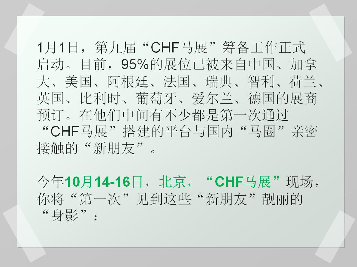 当你憧憬着今年秋季在“CHF马展”现场第一次见到他们的时候,不要忘了,今年“马圈”还有这些“第一次”也很值得回味: