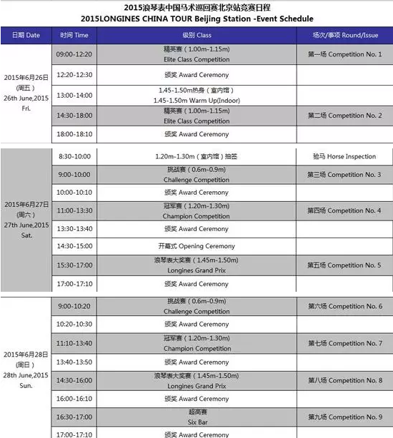2015中国马术巡回赛北京站赛程安排出炉