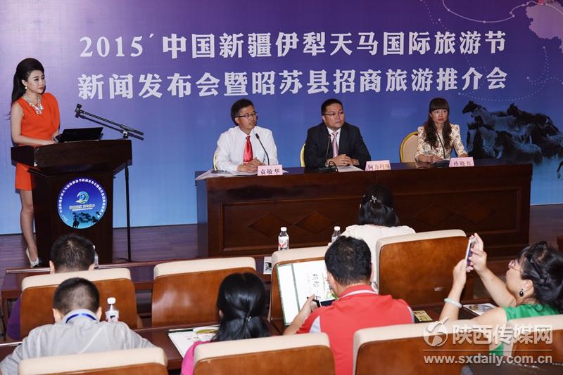 6月22日,记者从2015中国伊犁天马国际旅游节西安新闻发布会上获悉,2015中国伊犁天马国际旅游节将于7月12日在新疆伊犁昭苏县举行,届时市民可以在昭苏感受到“抬头就是一幅画,侧听就是一首歌”仙境般的美妙。