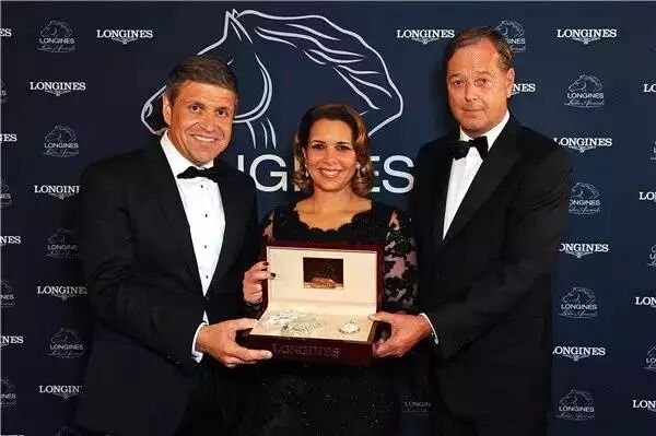 浪琴表全球副总裁兼市场总监胡安·卡洛斯·卡佩里先生,2015“浪琴表女士大奖”得主哈雅公主殿下,浪琴表全球副总裁兼销售总监查尔斯·维洛兹先生