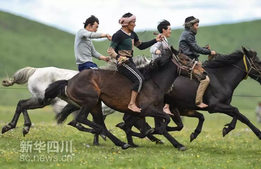 6月22日,四川省红原县安曲镇夺龙村举行了一年一度的原生态赛马节,全村70多匹良马在草原上飞驰狂奔,伴随着骏马的嘶鸣,村民们的喝彩声,整个草原变成了一片欢乐的海洋。