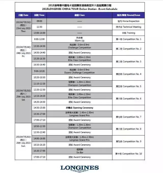 2015浪琴表中国马术巡回赛(以下简称“中巡赛”)东港商务区杯大连站的比赛即将于7月24-26日,在大连市东港商务区打响。中巡赛第三个年头,首次走入大连,大连站也将成为2015中巡赛最具特色的海上马术赛事,中巡赛对大连站的各项筹备工作的检验已经开始。