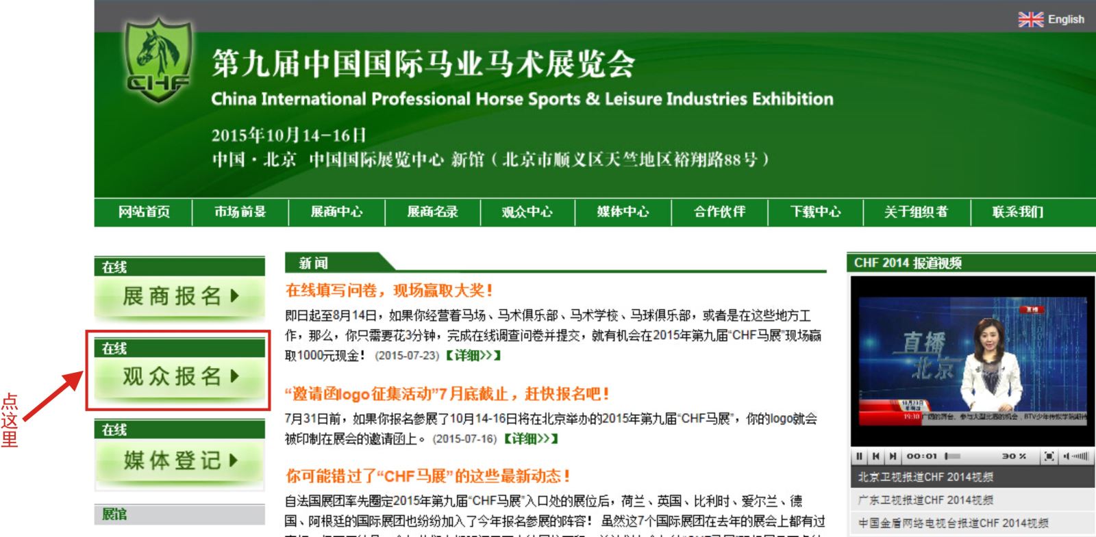 即日起至10月13日,你可以直接登陆http://www.chinahorsefair.com.cn/gzbm.asp 进行 “在线观众报名”,或登陆展会官网www.chinahorsefair.com.cn 点击首页左侧“在线观众报名”按钮进行“在线观众报名”。
