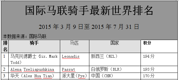 明年3月9日,里约奥运会马术赛席位将正式公布,在2016巴西里约奥运会倒计时一周年的日子,唯一征战奥运会马术资格赛的中国骑手华天凭借4个月以来的优异表现,基本锁定参赛资格,因此,中国体育代表团有望参加里约奥运所有大项。