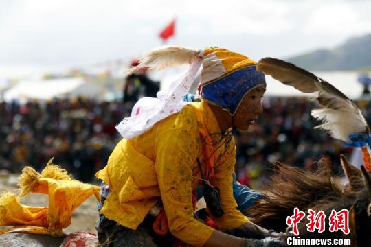 据中新网青海杂多8月7日电,7日的青海杂多吉乃滩上传来阵阵马蹄声,200多名当地的少年骑上自己的爱马,在此进行一场马背上的较量。