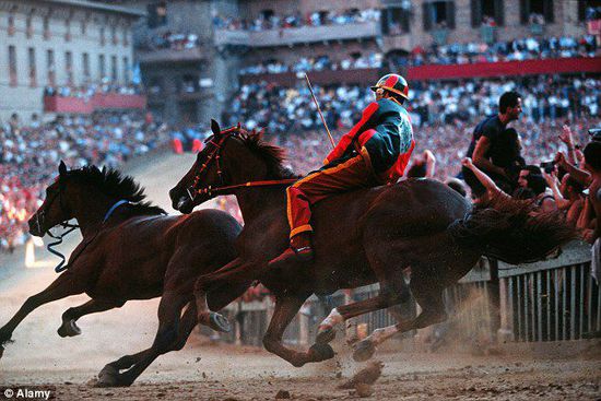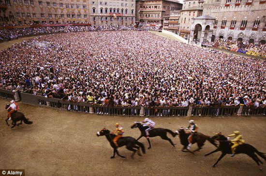 8月16日,将有5万人聚集在意大利锡耶纳优雅的中世纪广场,观看该地历史悠久而又富有争议的赛马活动。