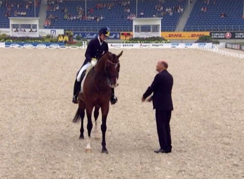 在马术比赛中,一切以马匹的利益为最高原则,马匹的福利高于一切。盛装舞步比赛有明确的规定:如果马匹出现任何受伤流血的情况,应该立即叫停比赛。大会兽医会根据马匹的受伤情况,选择是否终止比赛。