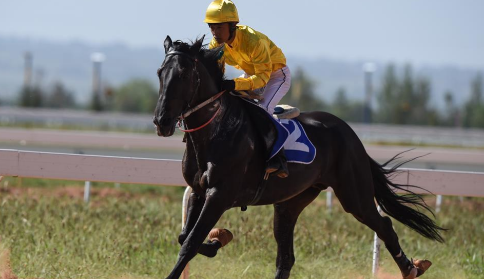 新疆代表队选手别·吾论巴依尔驾驭赛马“西域公主”在比赛中角逐