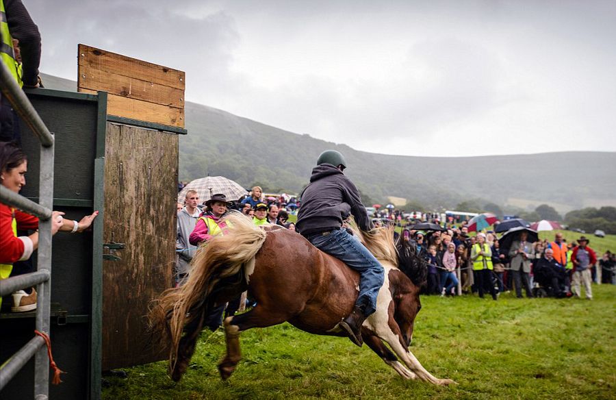 来自都柏林的摄像师达拉赫·梅森·菲尔德(Darragh Mason Field)用镜头记录下了一个个惊险的瞬间。他说:“这实在是一个有趣的比赛,大部分参赛者在马背上只坚持了几秒就摔下马来,好在他们只是受了轻伤。”