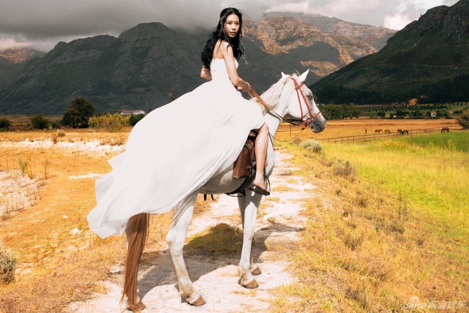 莫文蔚骑马婚纱大片