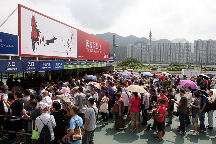 在2015/2015马季的国庆赛马日到来之至,再一起来回顾下上个国庆赛马日的精彩赛情吧!2014年10月1日,香港沙田马场举行“国庆杯”赛马三级赛,备受瞩目的“国庆杯”于当日下午四时开跑。经过一番激烈争夺,最终由香港骑手贺贤训练的“喜宝驹”以出色表现击败其他短途良驹,顺利夺冠。中央人民政府驻香港特别行政区联络办公室副主任杨健为夺冠的骑手、马主颁奖。