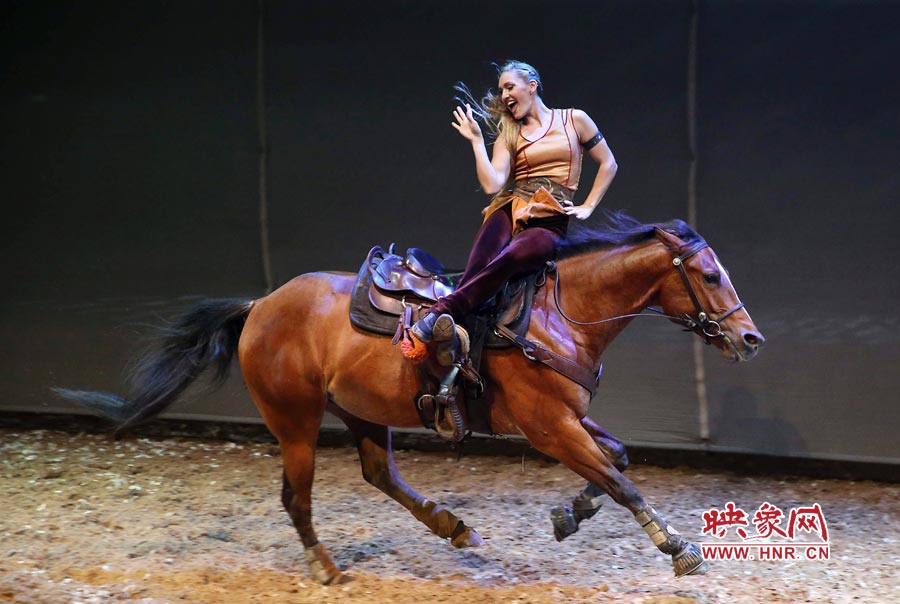 在这里,人与马无缝融合,身形灵动的骑师们在马背上做着各种惊险的动作:在马背上叠罗汉、跳绳,在空中表演杂技,或一人同时站立在两匹奔腾的俊马上。