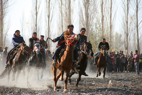 11月11日,一场精彩绝伦的“赛马叼羊”比赛在新疆生产建设兵团第二师二十五团三连养殖小区拉开了帷幕,来自二十五团、博湖县、焉耆县、和静县的70余名赛马爱好者参加了此次活动,活动现场奔腾的骏马,威武的英姿,震耳的吼声,一幅幅激情壮观的画面让前来观看比赛的人群掌声不断、热血沸腾。