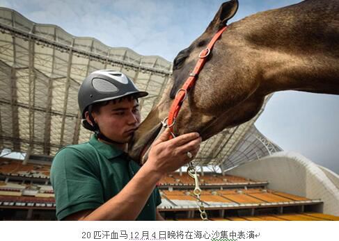 据悉,12月4日晚的文艺演出,由广东弘羊马业发展股份有限公司、广州市弘马农牧发展有限公司、野马集团主办,由2010年亚运会总导演宁肖周执导,整体定位为:一场美与力量的立体展现之秀,一篇马与人类的壮丽传奇历史,一首汗血宝马的抒情婉转史诗,一次陆海丝路世纪风云际会。观众将会在现场,看到超大帆屏中铺展出沙漠、草原、古都、战场、现代城市等震撼画面;欣赏到以实景珠江的璀璨波光和现场水景装置,所营造的西域风情、长安盛景、古今丝路的宏伟场景;看到英俊宝马震撼磅礴的精彩表演。届时,身价合计二亿多元的二十匹汗血宝马,将向莅临参加盛典的观众献上一场精彩绝伦的汗血马马术表演。