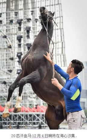 广州弘马集团从中国汗血马基地邀请来穗的、第二批汗血马11月30日驾临羊城,这批天马与首批驾临羊城的九匹汗血马在海心沙汇合,即将参加12月4日在广州海心沙举行的汗血马选美和“天马腾出珠水,一带一路情,弘马2015汗血马盛典”的文艺演出,以及12月5日的汗血马专场展示表演。南北马业合力在广东开创产业新格局的序幕也即将拉开。