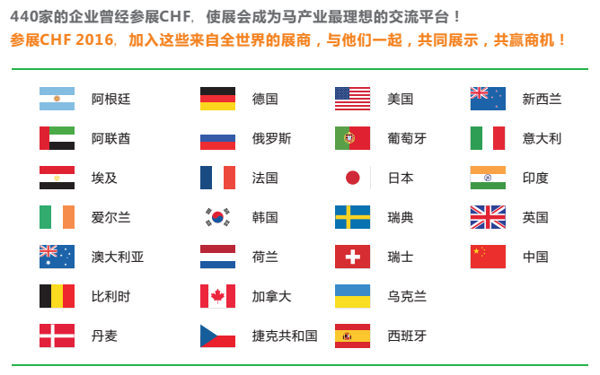 马上报名参展第十届“CHF马展”,加入这些来自全世界的展商,与他们一起,共同展示,共赢商机!