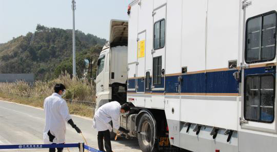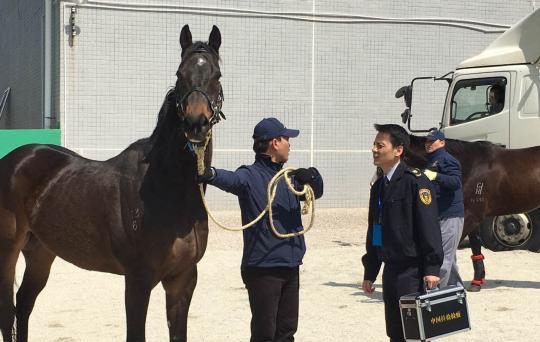 当日,试运马匹遵循预定线路,经深圳皇岗口岸入境,于中午12时许进入广东从化的广州马场。在检验检疫人员的监督下,工作人员首先对运输车辆进行消毒。消毒后的运马车进入临时隔离马厩,检验检疫人员与马会兽医一起,逐匹对赛马进行临床检查,确认身份和证书,检查体温、心率、呼吸频率、体表以及精神状态,认定马匹健康,无传染病和寄生虫病的临床症状。