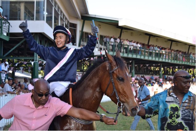 始于1845年的巴巴多斯速度赛马历史悠久,而上周六中国骑师的夺冠也是当地近111年的赛马历史上首次由中国骑师斩获赛事胜利。这一突破性的荣耀时刻赢得了全世界观众的欢呼同时,也被国际各地的媒体争相报道。当覃勇骑着冠军赛驹返回看台前向观众致意时,场上爆发出了雷鸣般的掌声与欢呼。巴巴多斯总理弗兰多·斯图尔特阁下(Freundel Stuart)以及包括戴历克·史密斯(Derrick Smith) 和艾伦·拉姆齐(Alan Ramsey)在内的国际知名马主和来自美国的马里奥·皮诺(Mario Pino)、来自加拿大的帕特里克·赫斯本德(Patrick Husband)等世界知名骑师与爆棚的现场观众,共同见证了这一里程碑般的重要时刻。