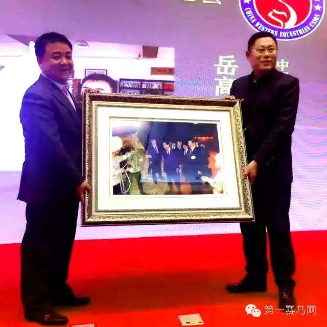 中国马业协会秘书长岳高峰向西促会会长于瑞宗赠送礼物