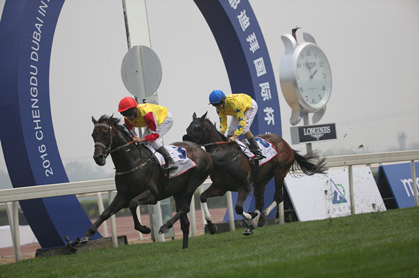 最后一场是备受关注的浪琴成都迪拜国际杯赛,全程2218米,奖金达150万元人民币,冠军奖金90万元。骑手理查德·穆兰策骑着“开始正确”后来居上,以2:18:75的成绩取得了完美胜利。在2014年至2015年赛季中,理查德• 穆勒最近两年状态突出,在2015-2016赛季夺得了29个冠军,又一次在迪拜世界杯嘉年华赛上与魔幻法师(Reynaldothewizard)合作取得胜利。